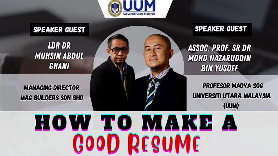 25 MAC 2023Webinar "How to Make a Good Resume" telah diadakan bersama pihak Universiti Utara Malaysia (UUM).